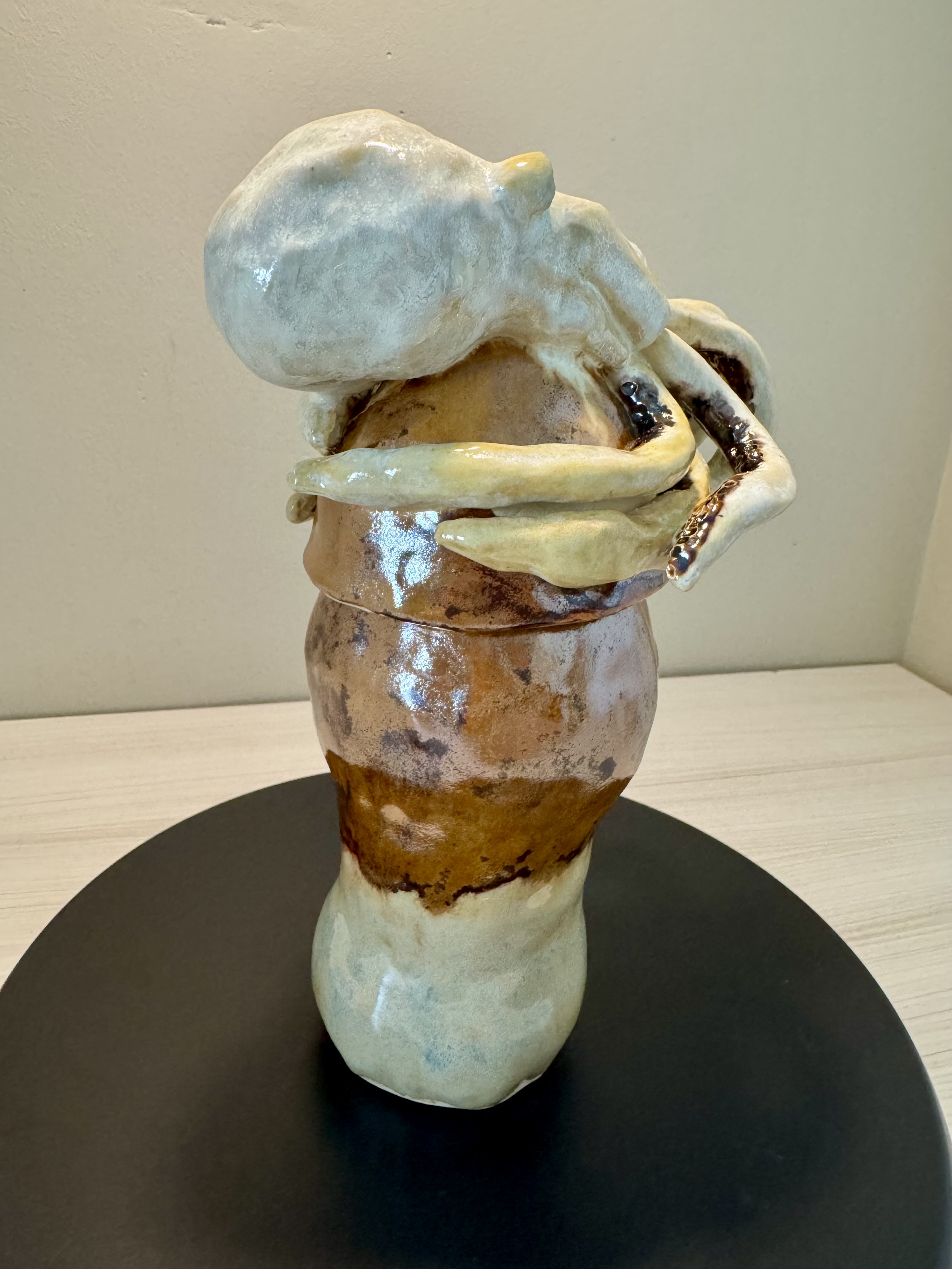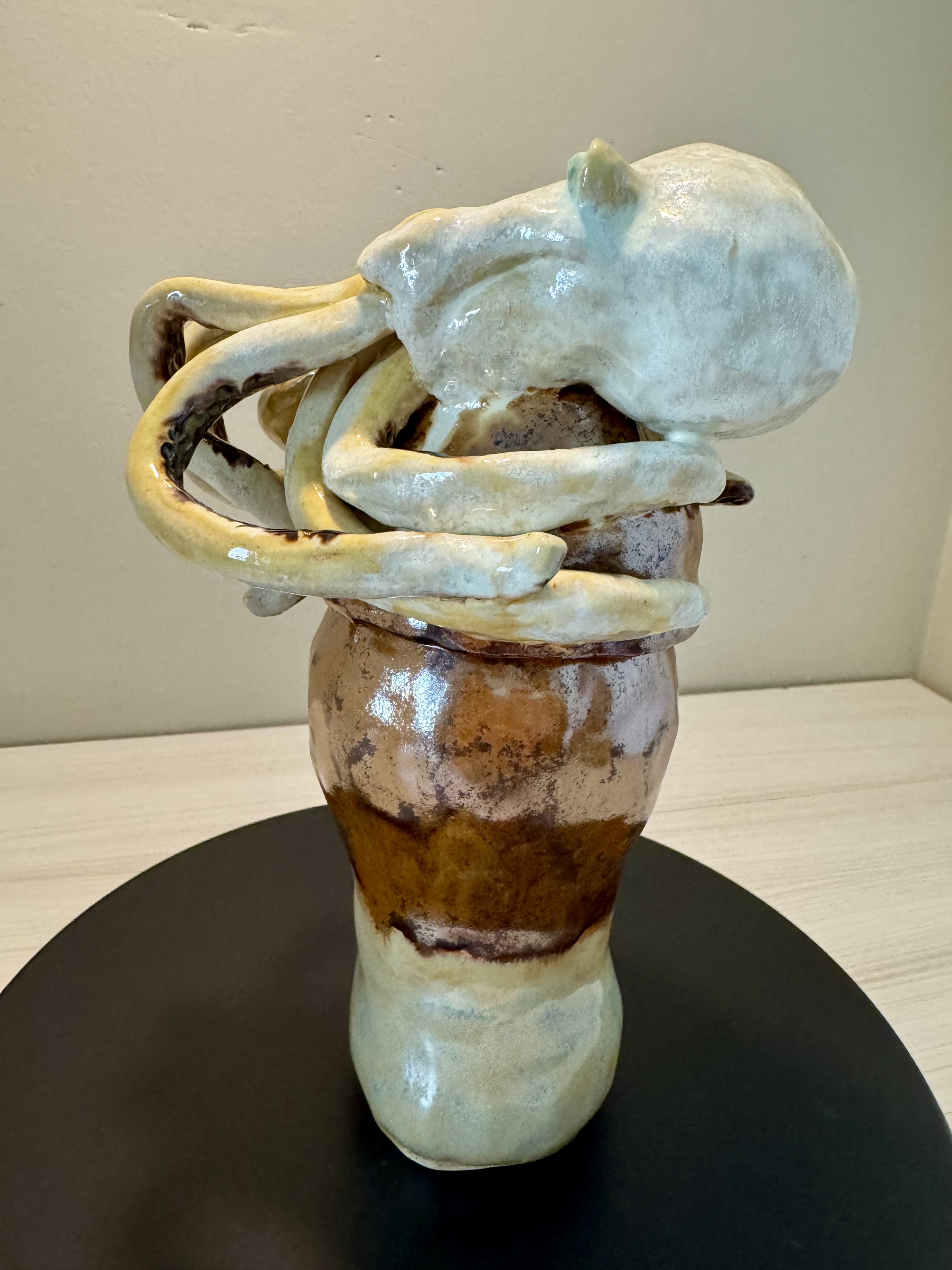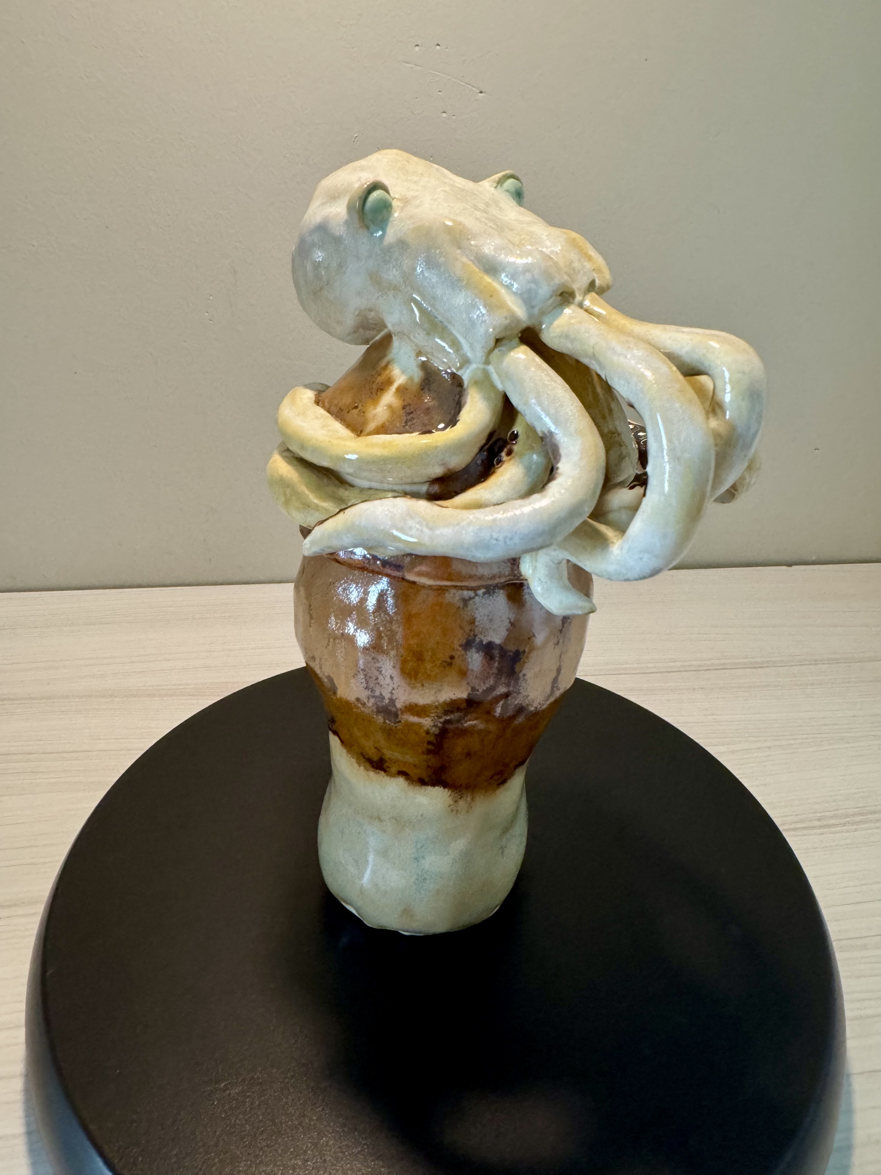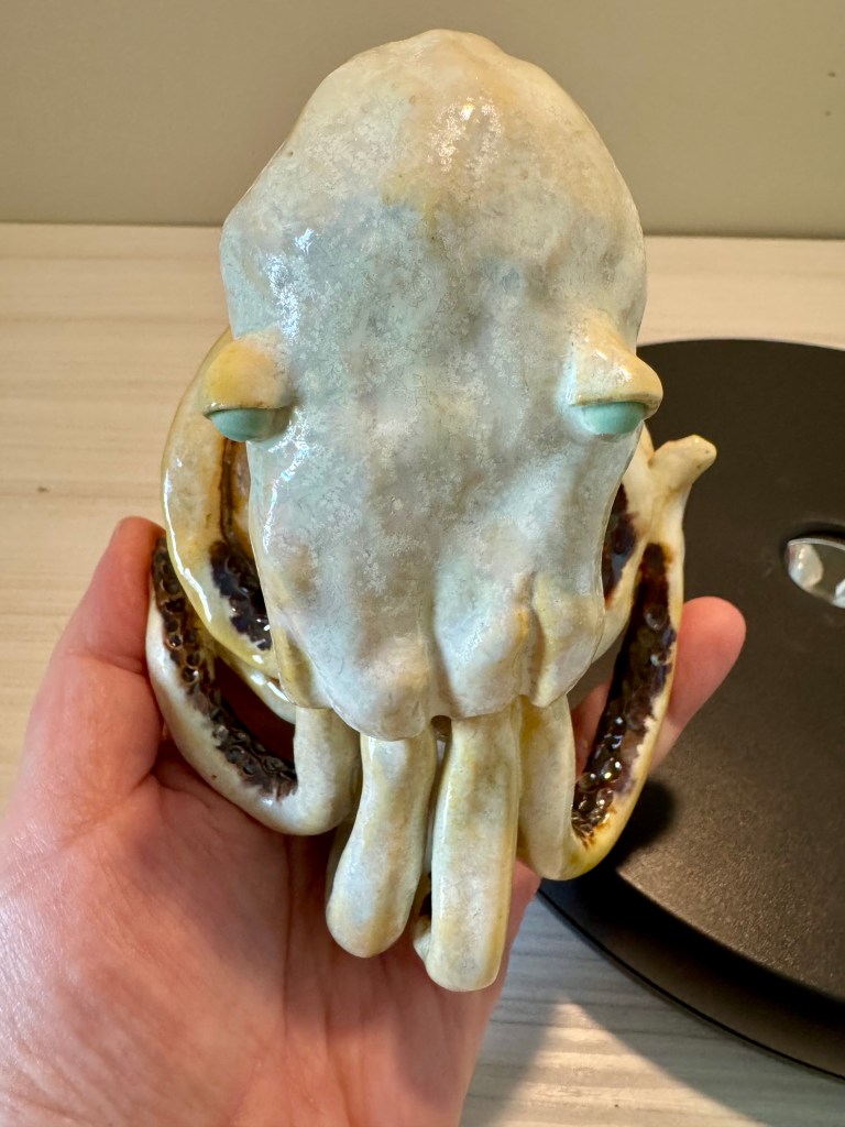I’ve always been fascinated by ancient Egyptian culture and artifacts. This canopic jar combines my love of the octopus and an artifact meant to preserve precious bodily organs for the afterlife. I thought, why not make something that can be used to preserve memories, or milestones, in one’s life? Or maybe it can be used to bury things best left in the afterlife and not cluttering up one’s day to day existence.