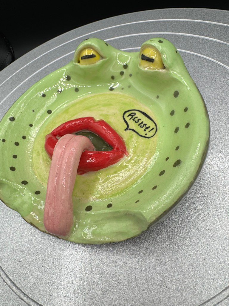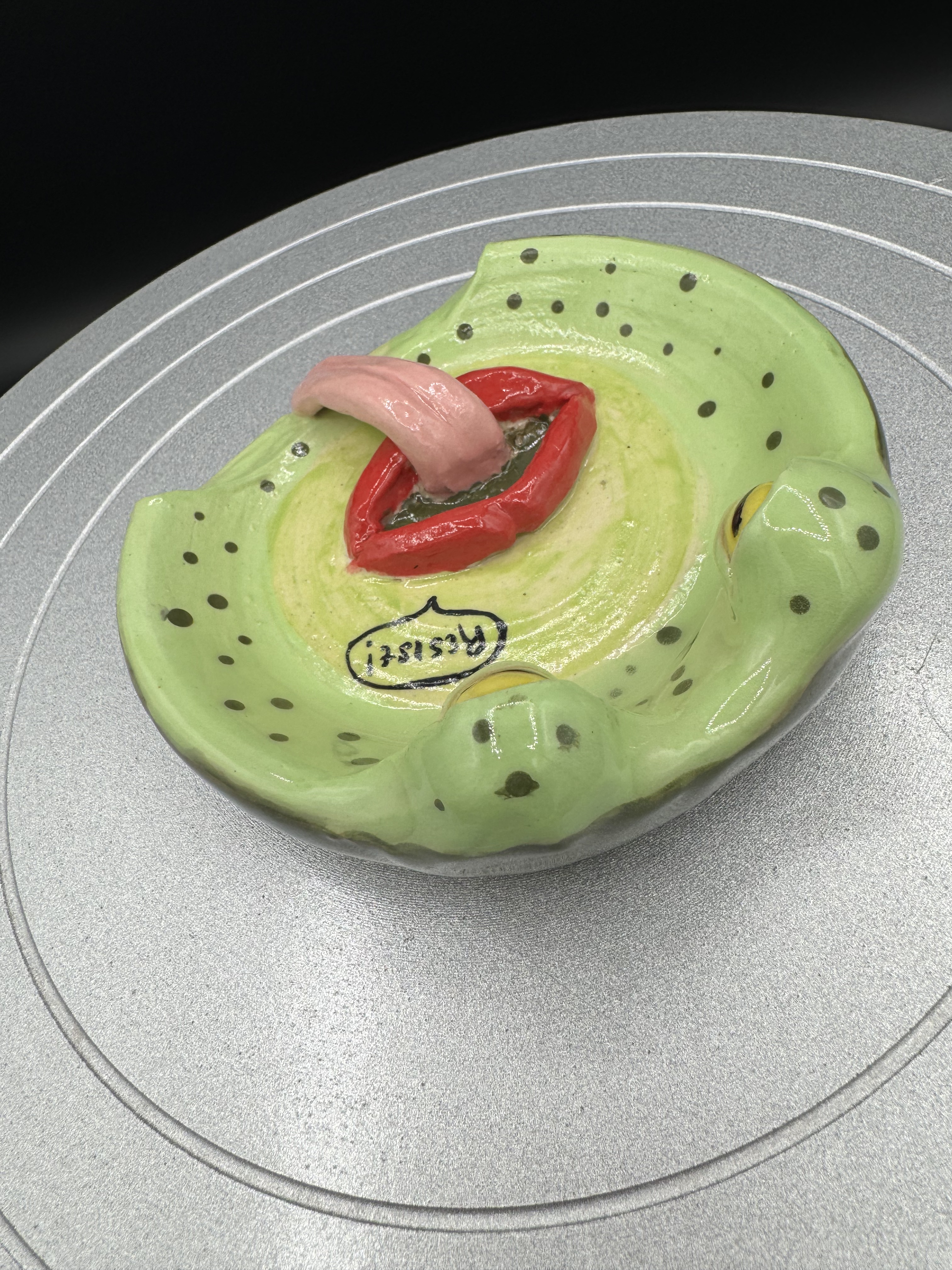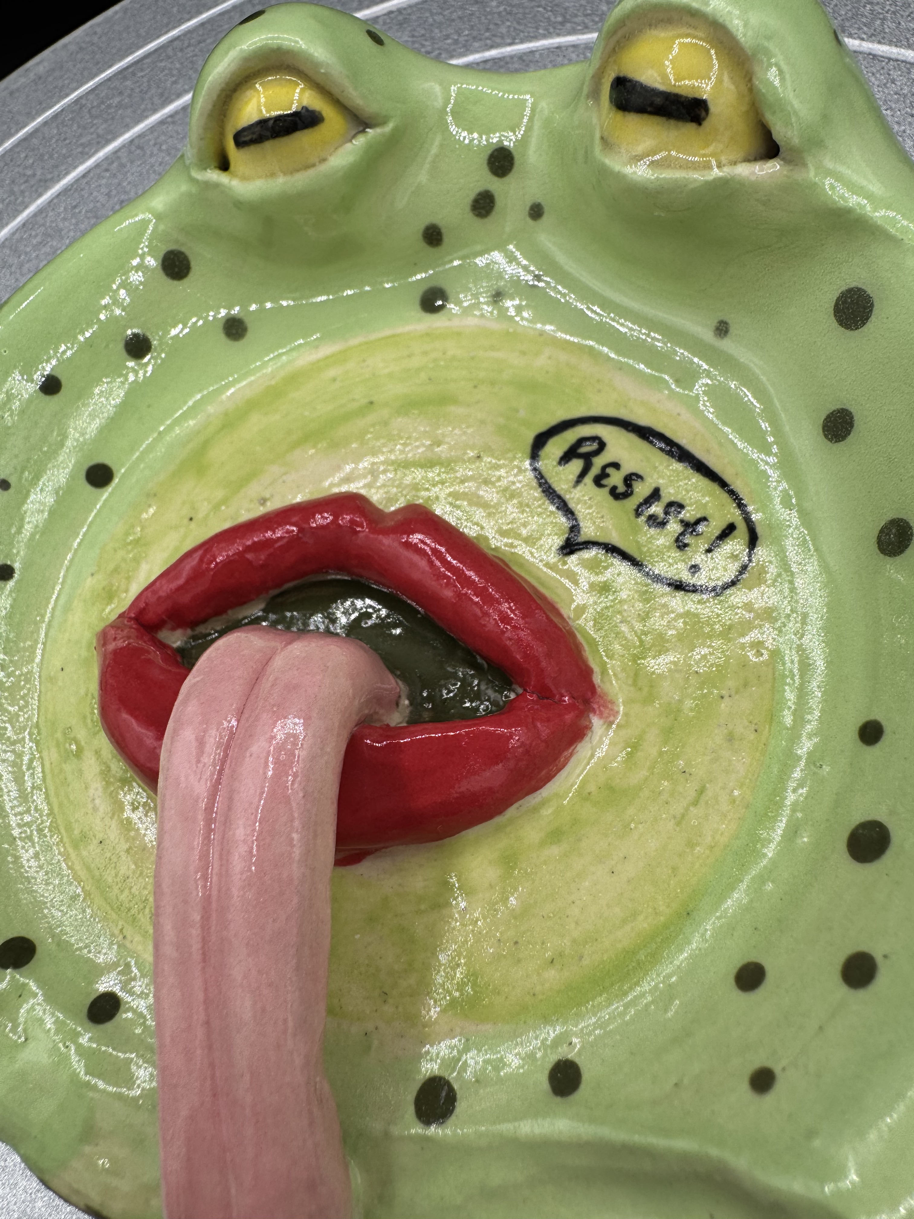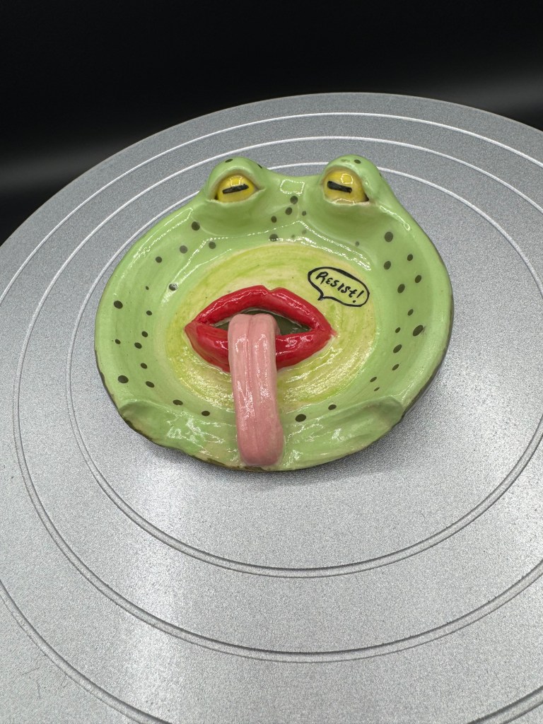 Built on the wheel, finished with hand-built features. Hand-painted with underglaze, clear underglaze applied for final firing.